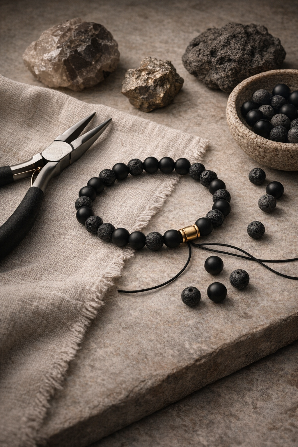 Each band begins with carefully sourced natural stone — selected not only for its beauty, but for its character. We work with materials shaped by the earth over time: stones formed under pressure, refined by nature, and chosen for their depth, texture, and individuality.